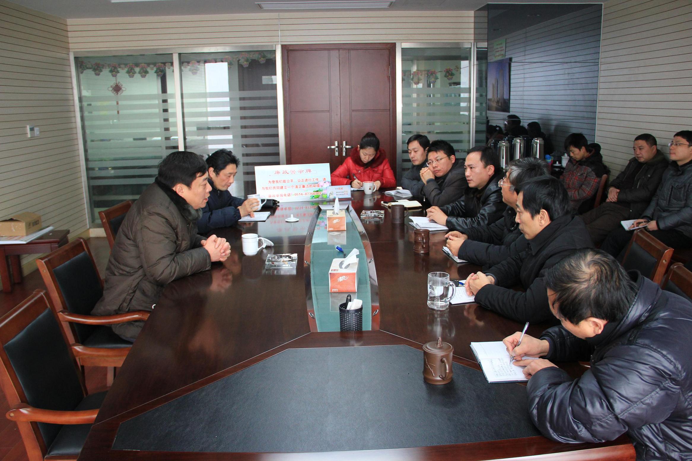 為貫徹落實(shí)習(xí)近平總書記在十八屆中央紀(jì)委二次全會(huì)上的重要講話精神,在春節(jié)即將到來之際,公司紀(jì)委書記錢啟明、紀(jì)委副書記、紀(jì)監(jiān)室主任陳緒寶23日和25日專程到鹽城華建置業(yè)公司、揚(yáng)州華盛置業(yè)公司開展專題廉政警示教育,并送去一批廉政警示掛牌、桌牌。兩個(gè)地產(chǎn)公司全體人員簽署了廉政承諾書,鹽城四家乙方總包單位簽署了廉政響應(yīng)書,甲乙雙方簽訂了廉政合同。