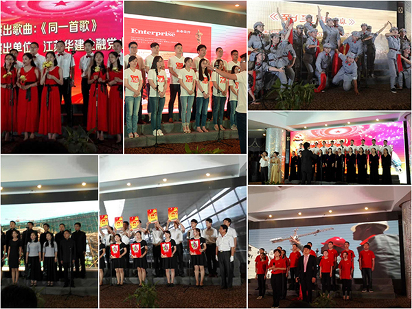 大會首先用歌詠比賽的方式拉開了帷幕,華建、揚建、揚安及所屬基層單位黨組織共選送了9個節(jié)目,《我們走在大路上》、《共筑中國夢》、《國家》、《跟著共產(chǎn)黨走》、《到吳起鎮(zhèn)》等一個個精彩的表演節(jié)目獲得了熱烈的掌聲,展示了建工控股系統(tǒng)廣大黨員干部激情澎湃的精氣神。