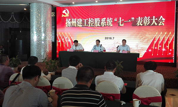 7月1日下午,為紀(jì)念中國共產(chǎn)黨建黨95周年,揚州建工控股系統(tǒng)“七一”表彰大會暨歌詠比賽在揚州人家大酒店4樓會議室隆重舉行,系統(tǒng)各單位主要負(fù)責(zé)人、黨務(wù)工作分管領(lǐng)導(dǎo)及黨務(wù)部門負(fù)責(zé)人,建控機關(guān)、華建總部全體人員,華建在揚分支機構(gòu)全體黨員、入黨積極分子,以及受表彰的先進基層黨組織代表、優(yōu)秀共產(chǎn)黨員、優(yōu)秀黨務(wù)工作者等共300余人參加大會。